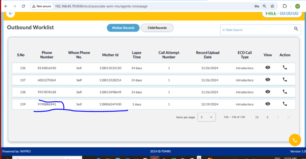 When completing an outcall to the Beneficiary and selecting "Call Verified" as Yes and "Call Disconnected" as No in the closure screen, the record should move out of the Associate (ANM) login and appear in the Supervisor’s worklist. However, this is not happening. Below are two records for which this issue is occurring.