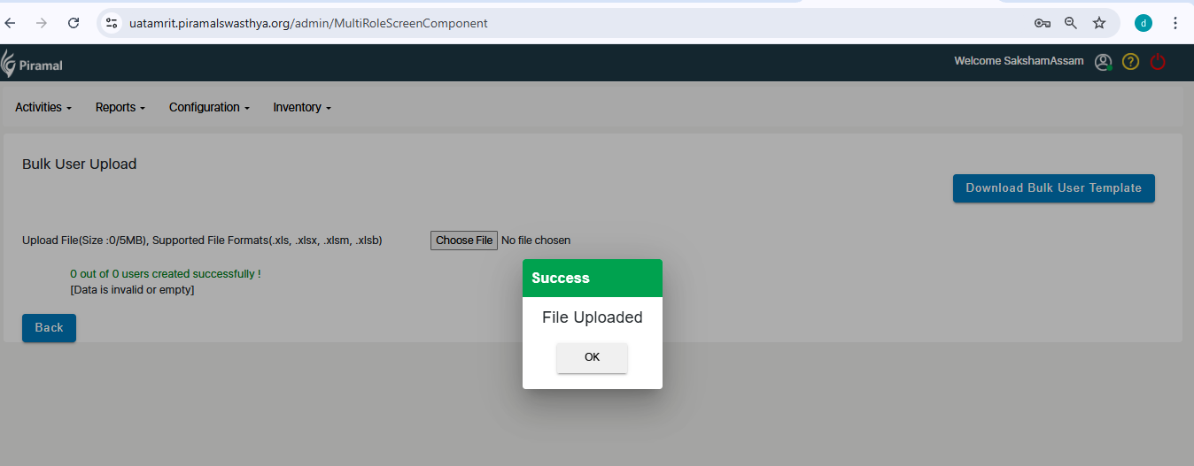 - The system must validate the uploaded file format and structure to ensure it matches the template.