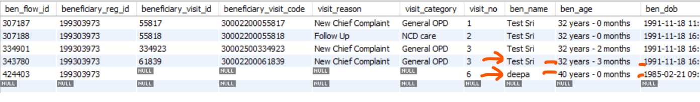 - Note- I'm using user- sjvnnurse1 but in the db updating createdby- nurseuptmc for both the beneficiary.()