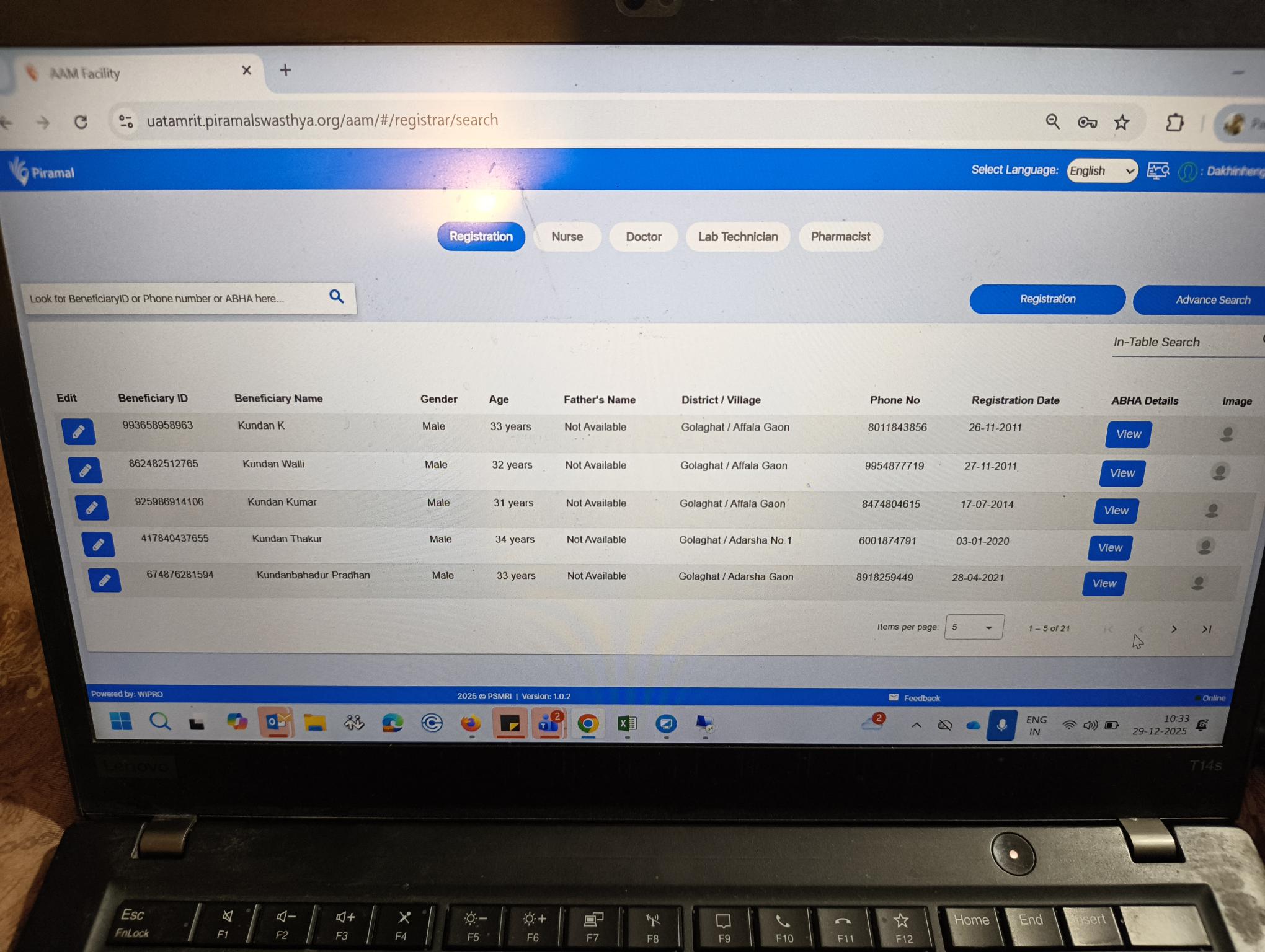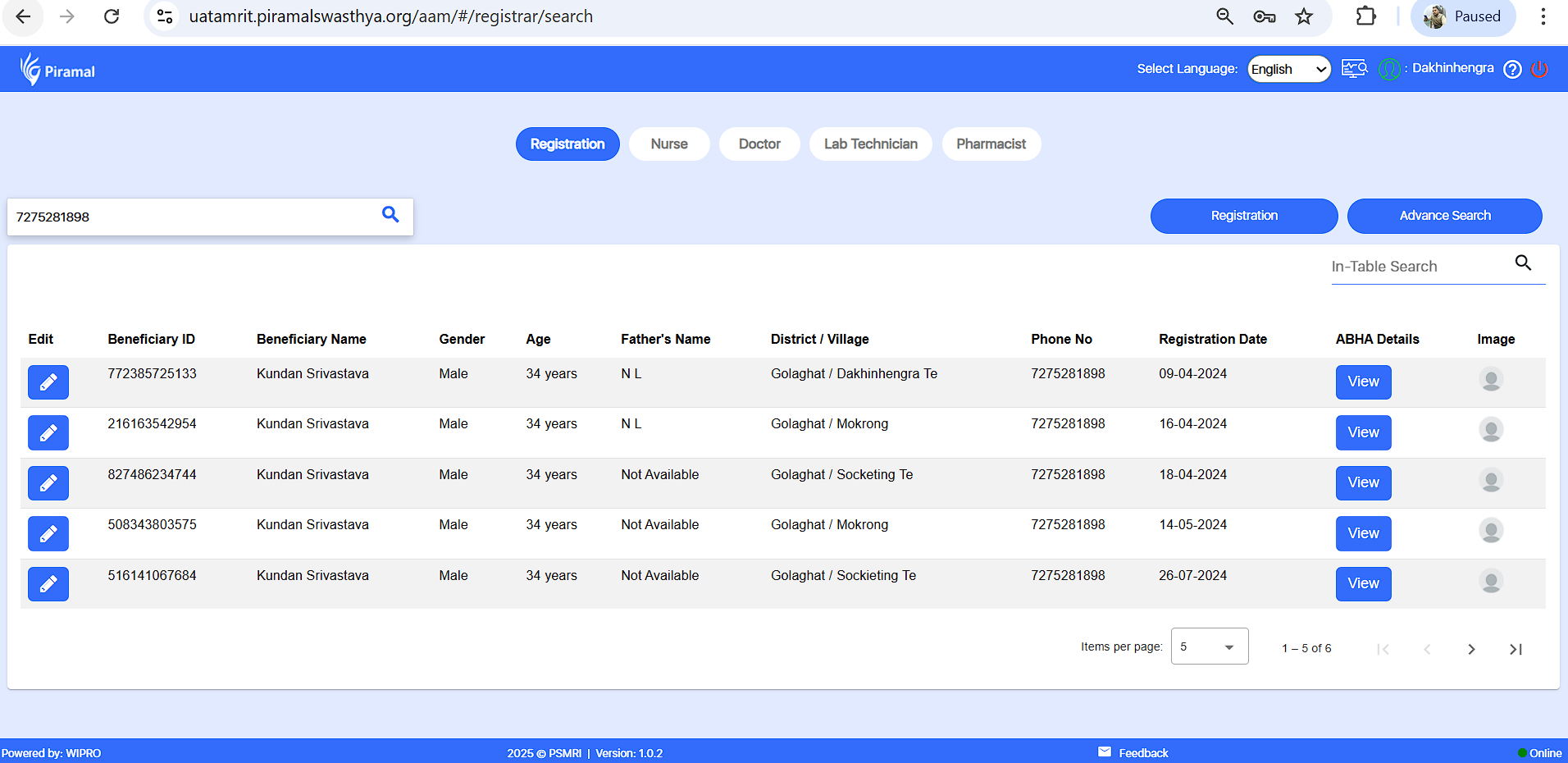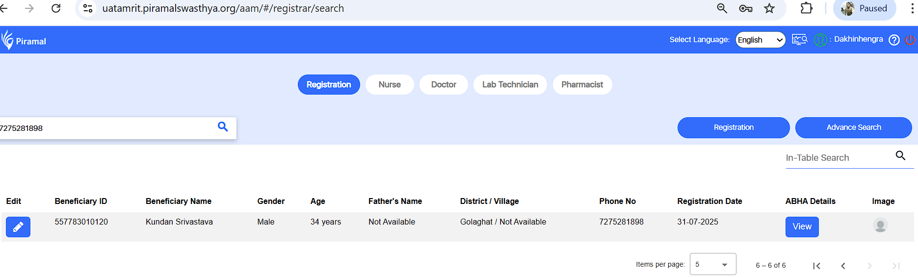 4. With advance search- beneficiary data is present with mobile number