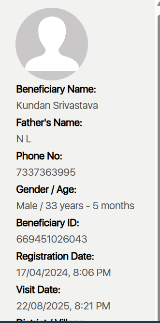 As a nurse I want to view the details of a beneficiary added during registration, including the newly added fields: phone number, last name, and father's last name, etc. so that I can have complete and accurate information about the beneficiary for effective communication and record-keeping.