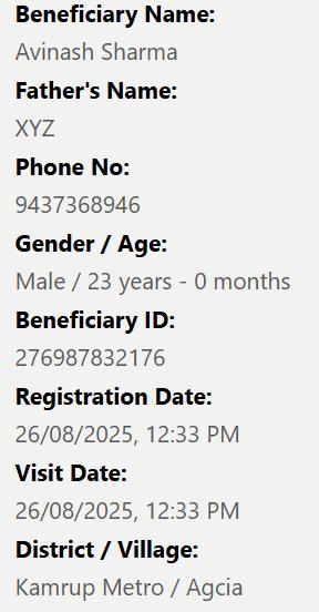 View added beneficiary details during registration