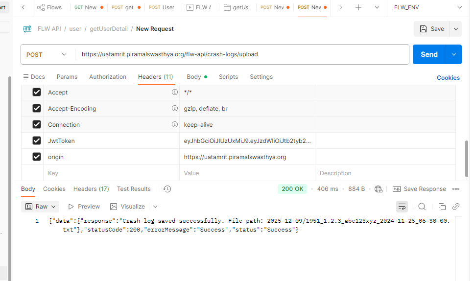 To Enable Android apps to send locally saved crash log files (from the crash handler) to the server for centralized tracking, monitoring, and troubleshooting. We Required a endpoint that accepts Android crash report text files (.txt) as multipart form data and stores them securely on the server for debugging and analytics.