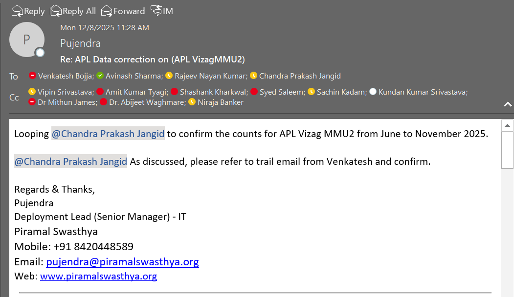 Dear Team,