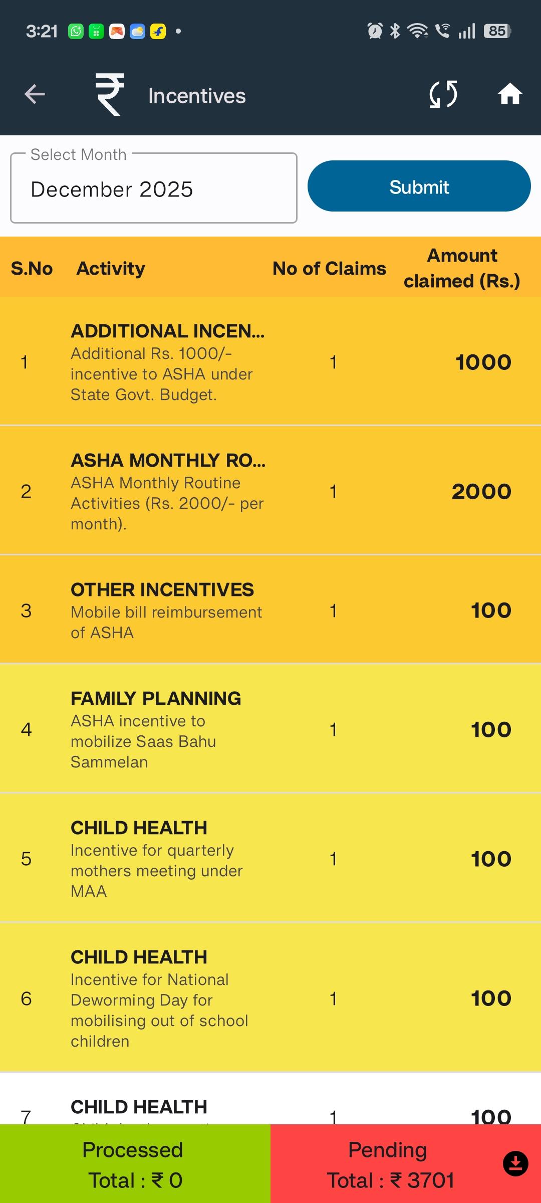 • Monthly Default Incentive Activities – shown on top, with a distinct background color, and no click action.