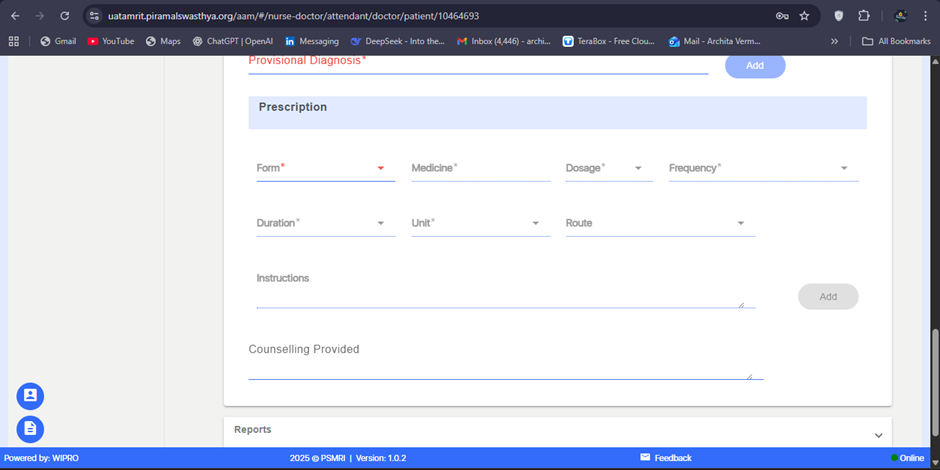 AMM-2192 TM/MMU/AAM – Remove mandatory validation/symbol(*) for Prescription section under Doctor Module