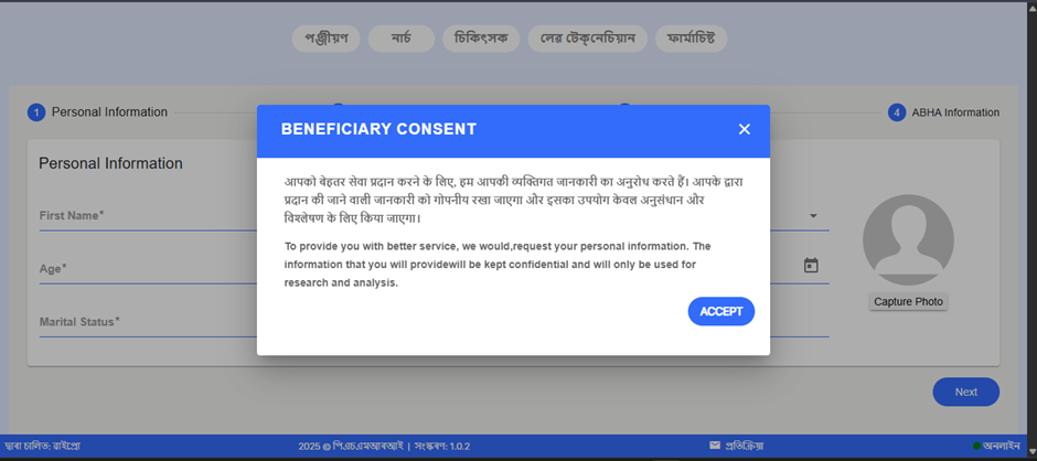 Registration – Beneficiary Consent popup displays English text even when language is set to Assamese