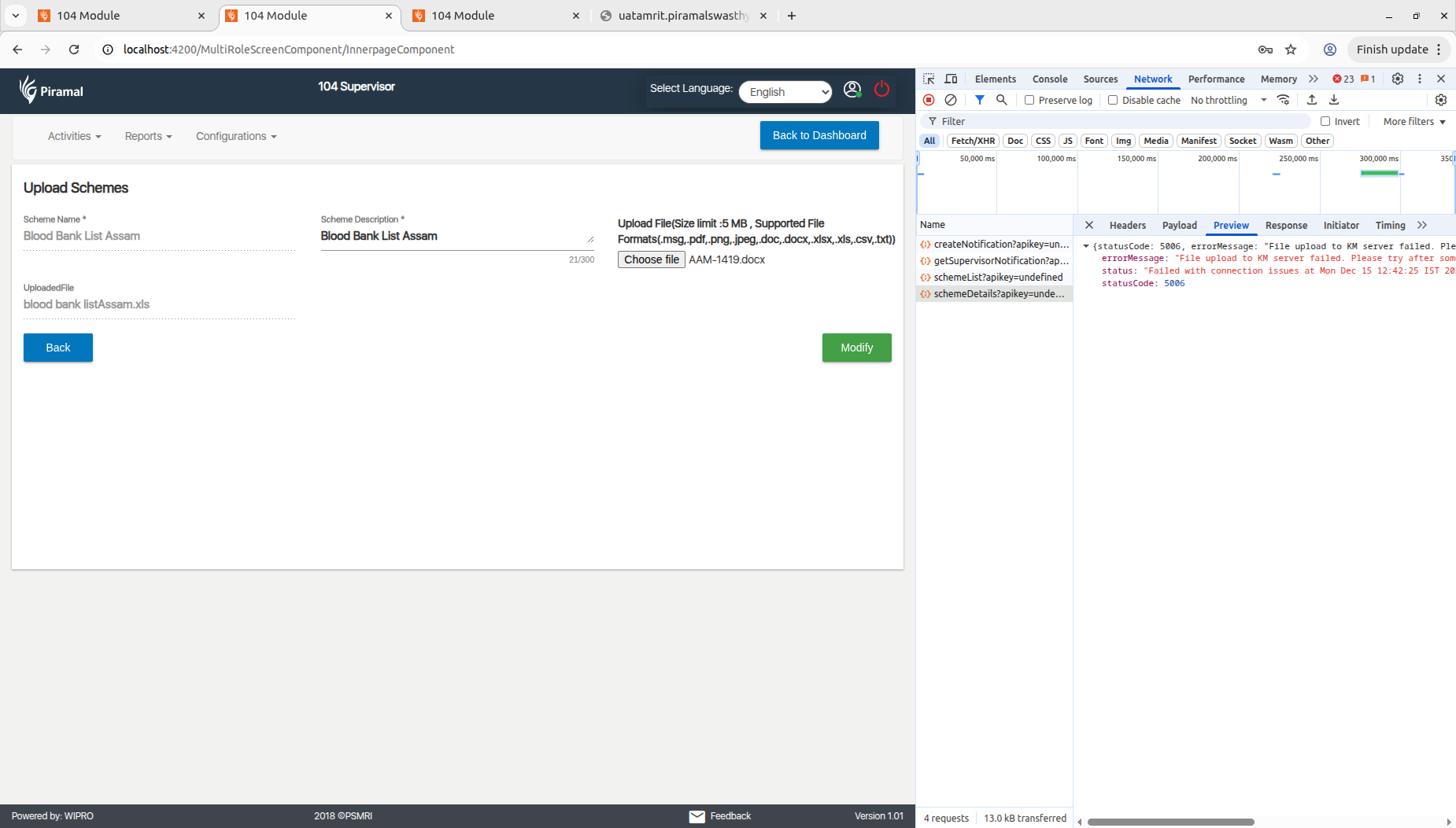 In the Upload Schemes section, when the user tries to modify an existing uploaded scheme file, the system does not update the file.