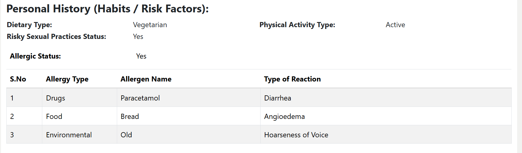The Risky Sexual Practice Status entered in the Nurse Module is not displayed in the Doctor Module. However, the same information is correctly printed in the Case Sheet, indicating a display or data-mapping issue specific to the Doctor Module.