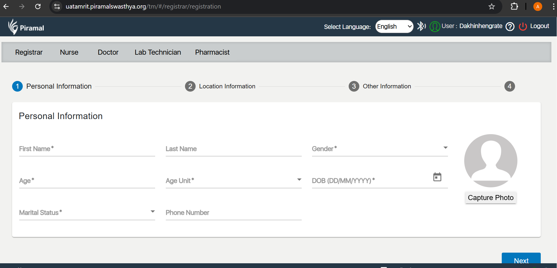 - Do a fresh registration, Nurse flow , doctor flow and pharma flow.