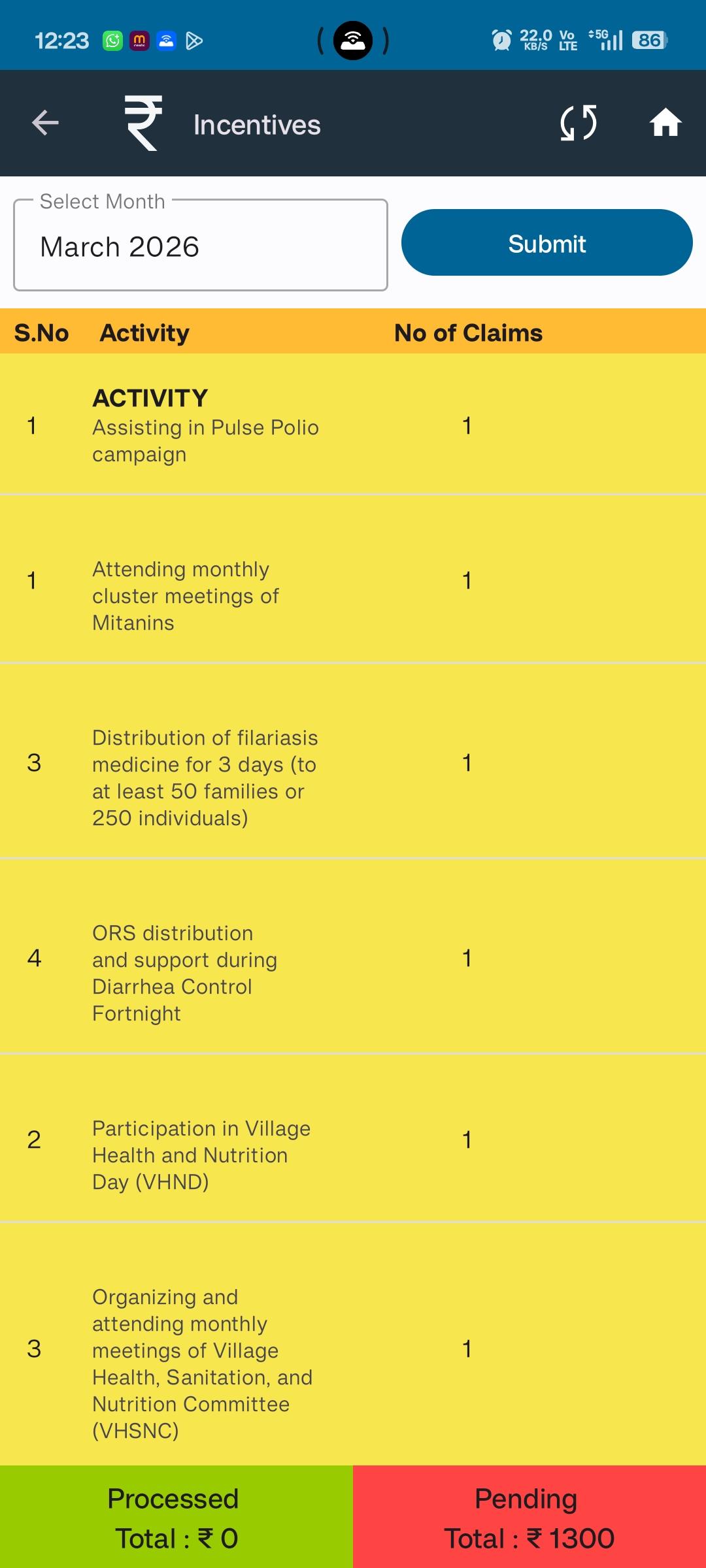 This incentive is applicable monthly once for ASHA attending monthly cluster meeting. And Yearly 12 Meetings are allowed in the Calendar Year.