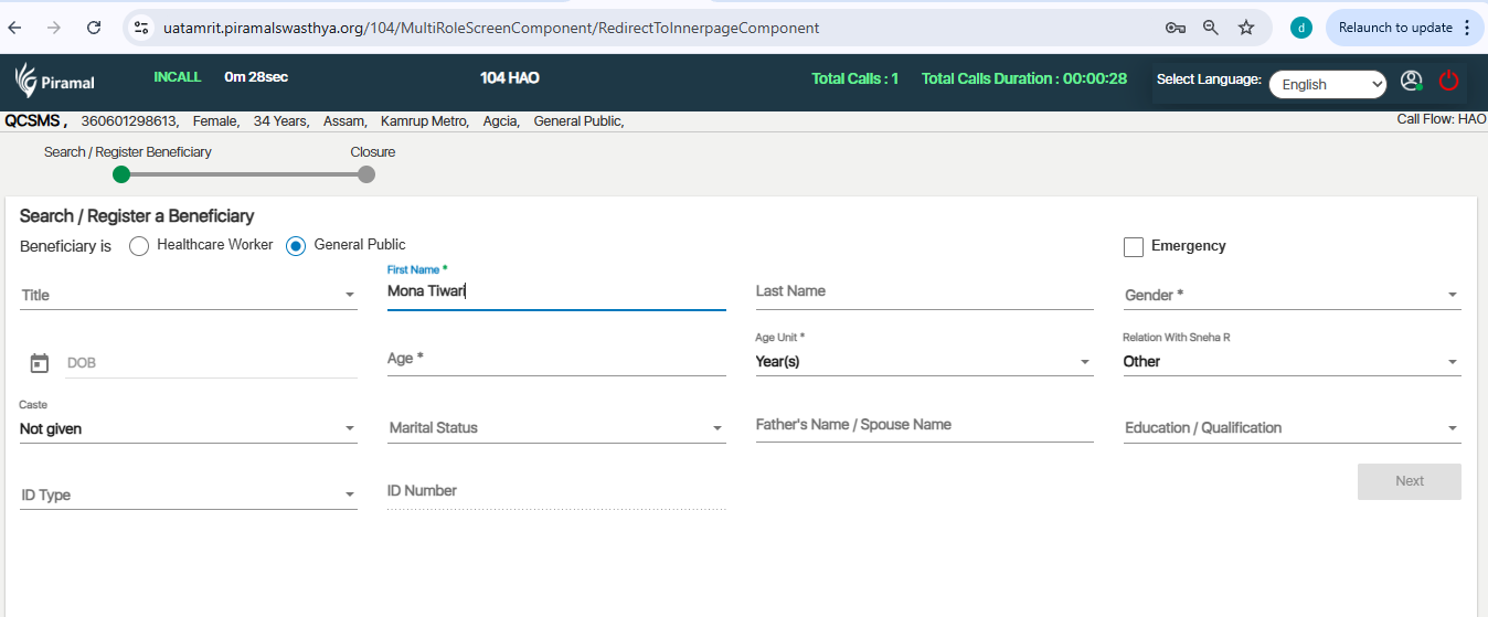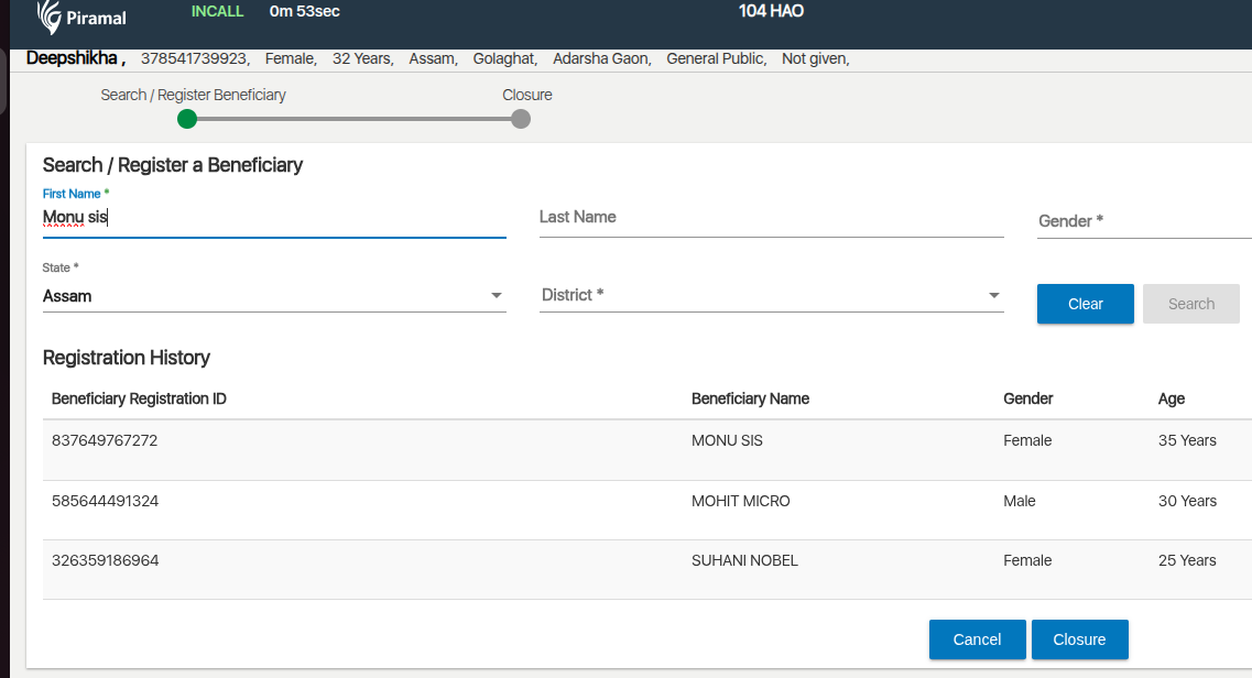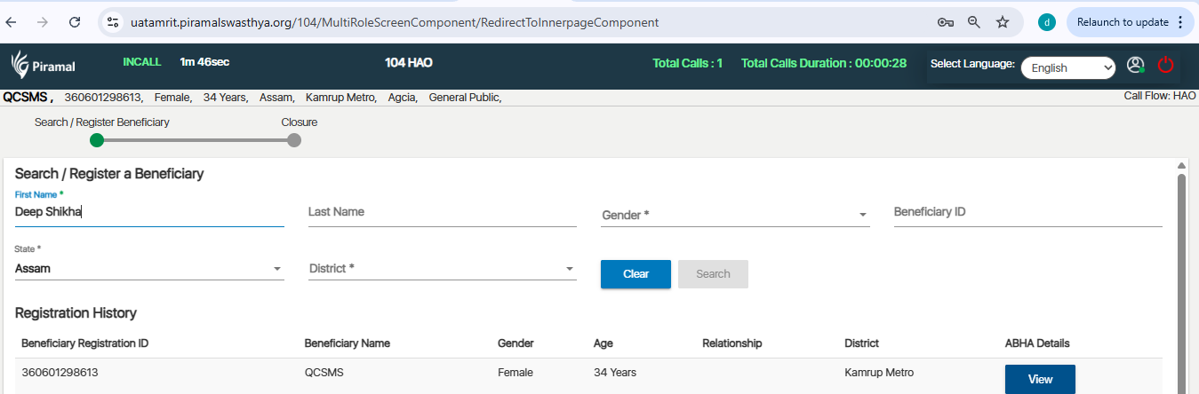 First Name field does not accept space in Registration / Search module