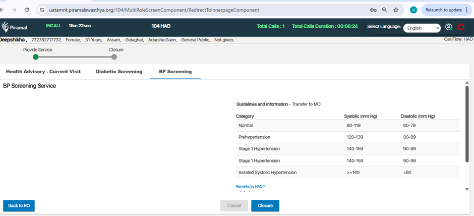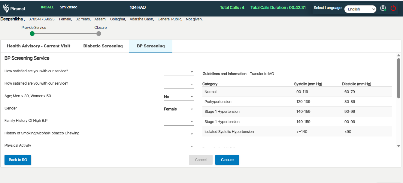 BP Screening Service is showing blank