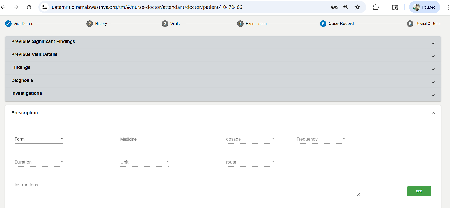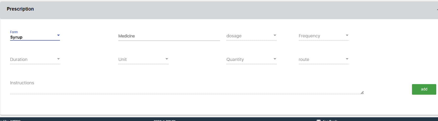 5. All the field under prescription is non-mandatory but if user is selecting "Form=Tablet/Capsules/Syrup and etc.." then all the field should become mandatory except "Route and Instruction"