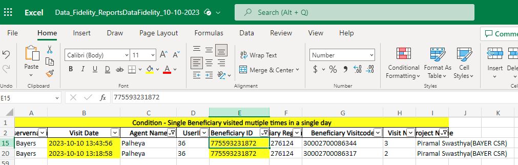 Issue: * In the data fidelity report, we are getting three or two visit of same beneficiary at single day but in AMRIT application we are getting only single visit of beneficiary.