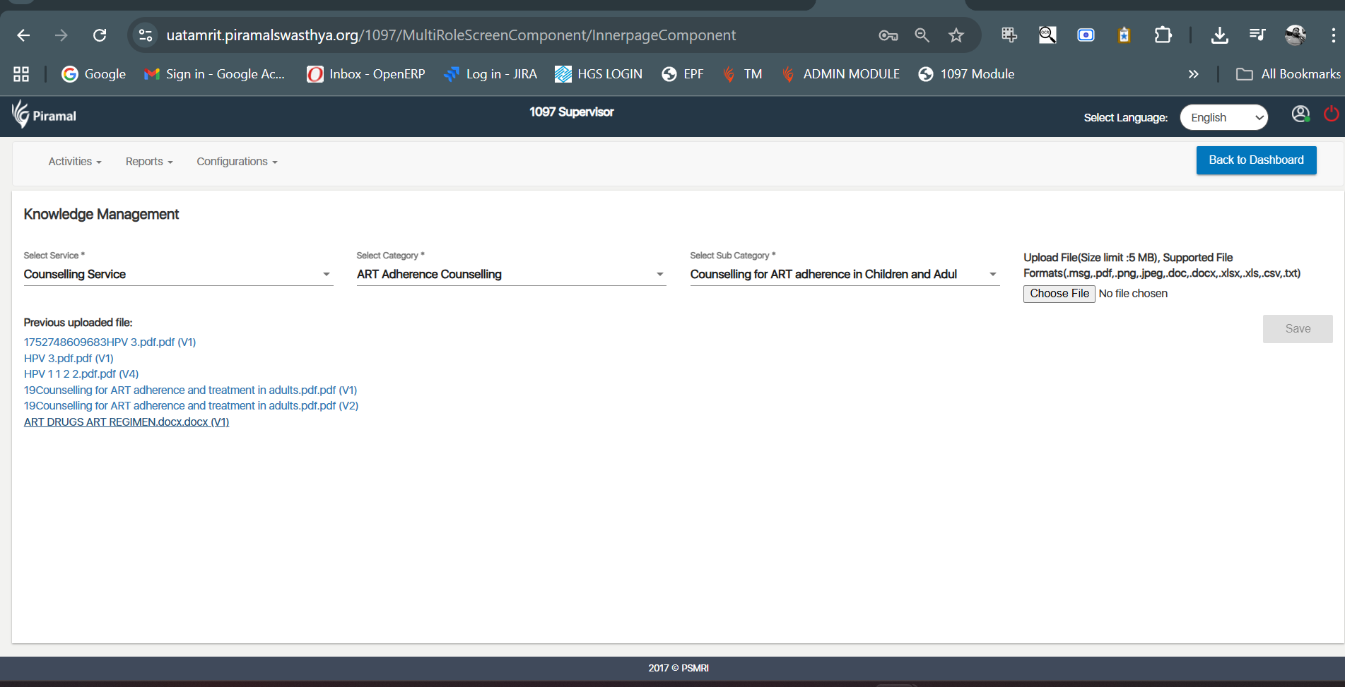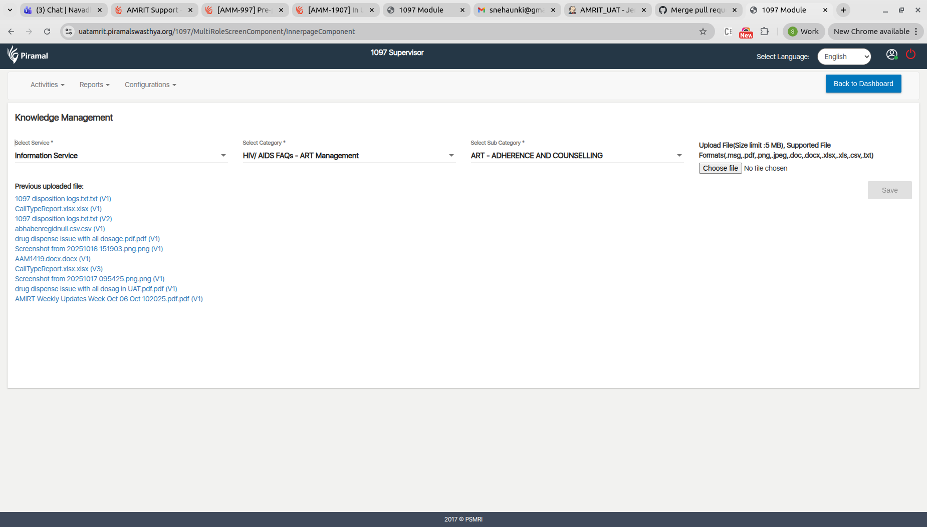 Description: Multiple file are not attached in counselling category and subcategory in 1097 supervisor dashboard, if we have upload new file the old one is removed automatically.